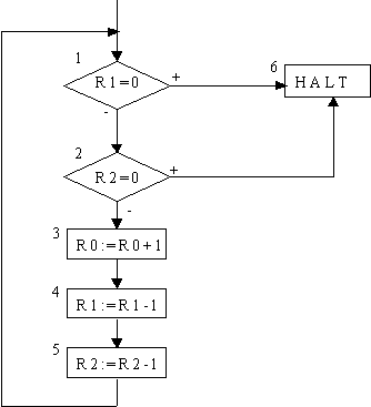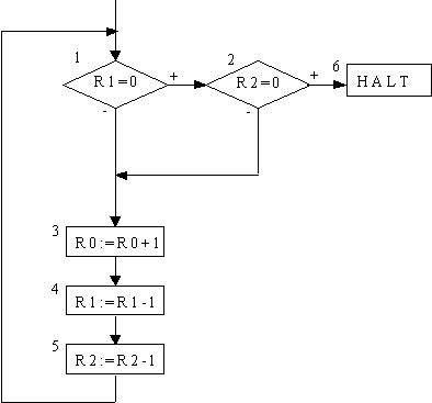 Übung 1: Beschreibe eine Registermaschine, die von zwei Zahlen das Minimum berechnet.